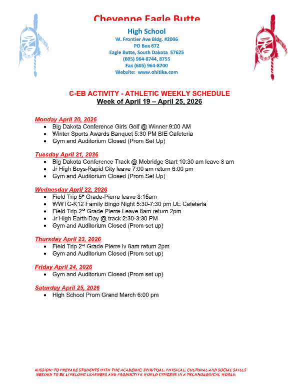 School VISION: Keeping our Wakanyaja (children) sacred through positive thinking.